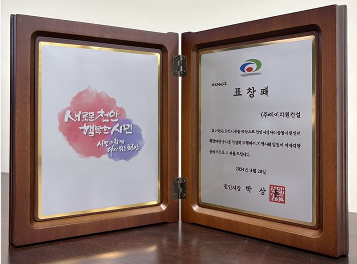 ▲ 천안시일자리종합지원센터 확장이전 공사 표창패